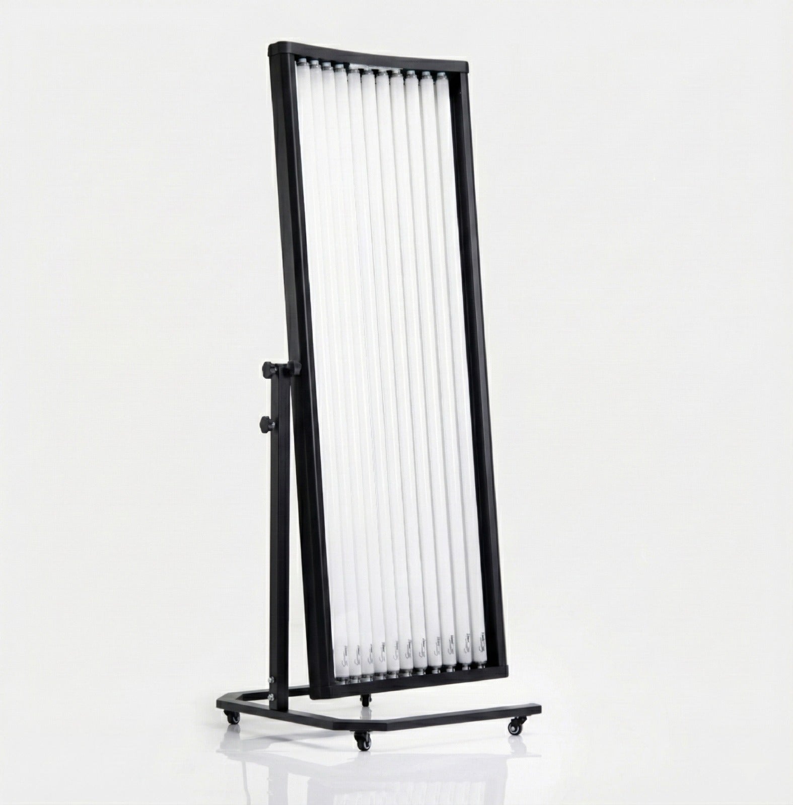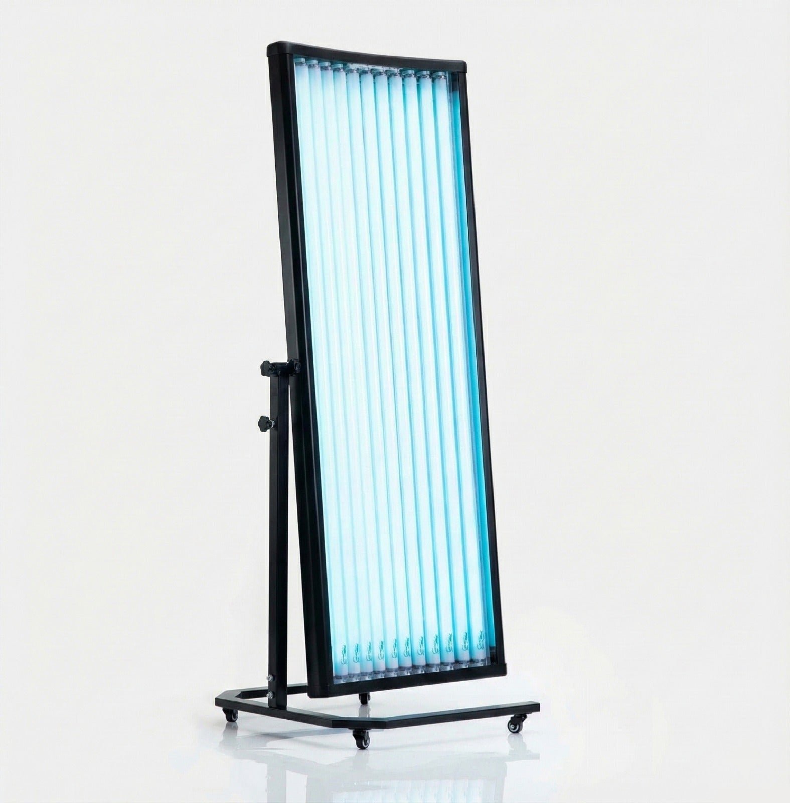 This 12-lamp sunbed canopy can be positioned upright, over horizontal surfaces or angled to achieve results in those hard-to-reach areas.